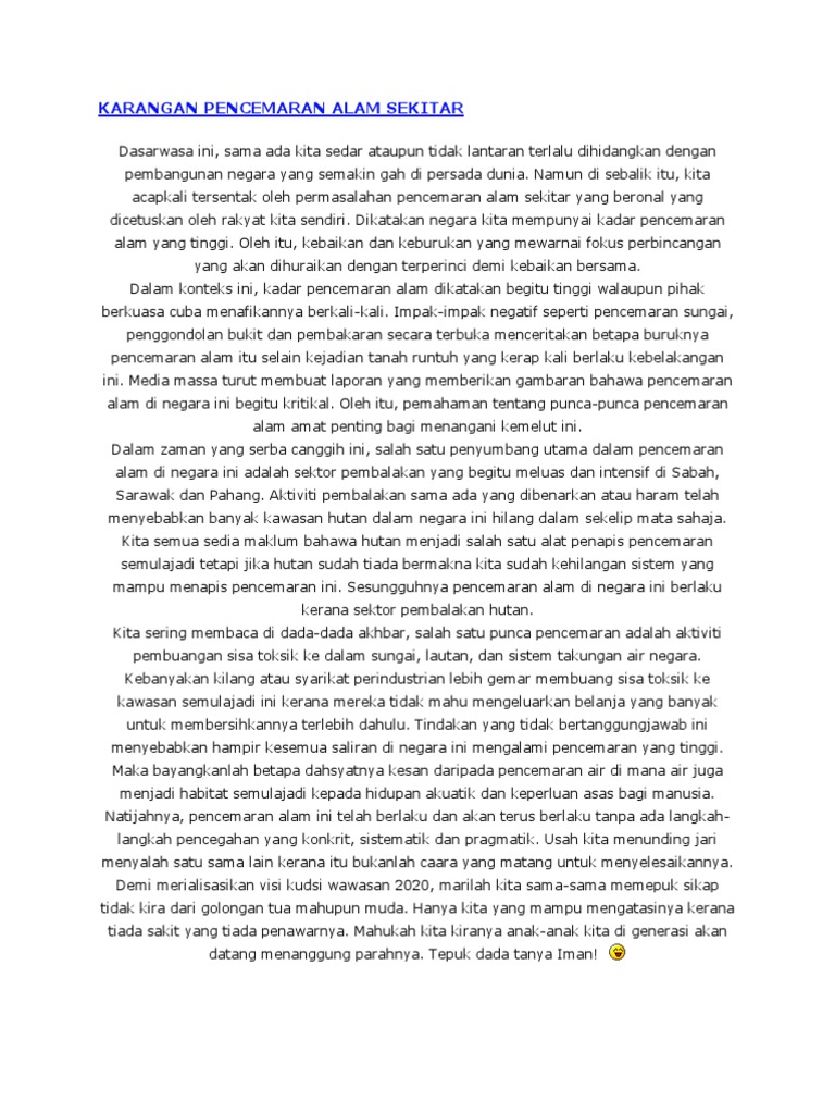 Contoh Karangan Tentang Pencemaran Alam Sekitar Pdf